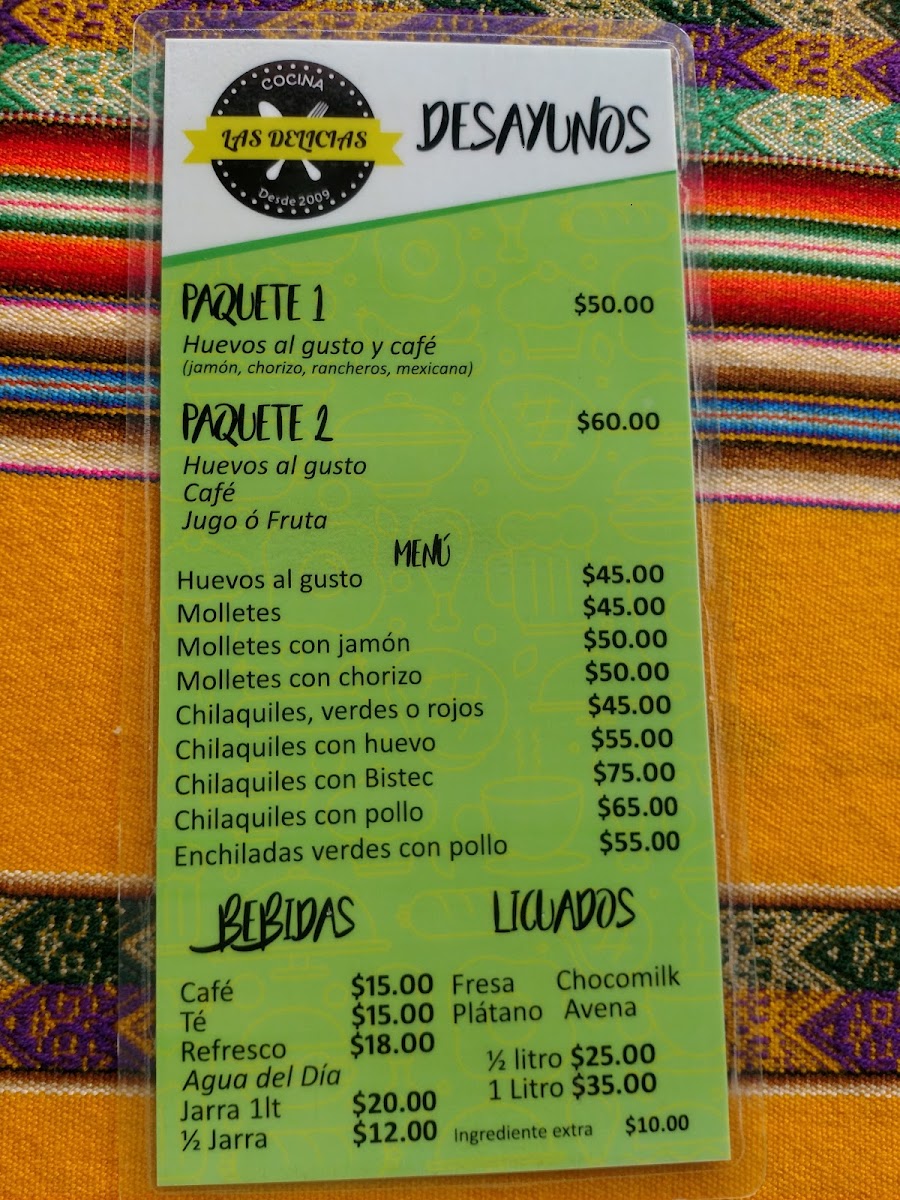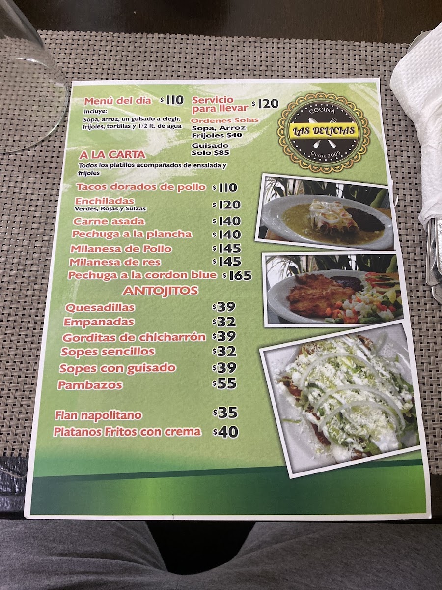 Cocina Las Delicias offers a diverse and delicious menu catering to various tastes and needs. The Servicio para Eventos provides a range of options perfect for any occasion, while their Servicio a Domicilio ensures that customers can enjoy their meals from the comfort of their homes. The Comida para LlevarVegetariano menu features wholesome vegetarian choices, perfect for those looking for lighter yet flavorful dishes. For breakfast lovers, the Desayunos menu presents an array of morning favorites, crafted to satisfy any craving. Whether you're hosting an event, looking for a meal to go, or simply in the mood for a hearty breakfast, Cocina Las Delicias offers something for everyone.